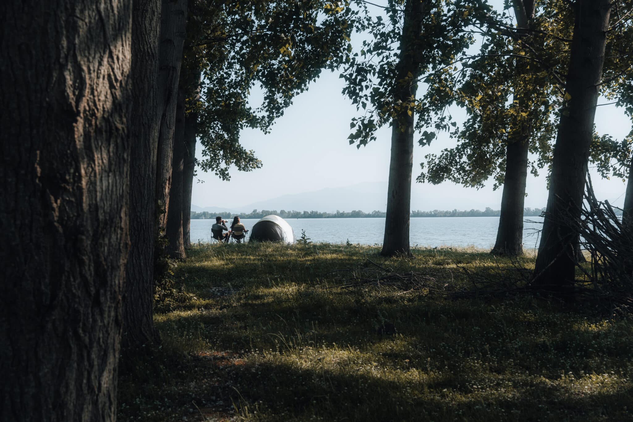 Το απόγευμα βρίσκει τη λίμνη λουσμένη σε ζεστά χρώματα. Οι τελευταίοι ερωδιοί διαγράφουν τοξωτές πορείες στον ουρανό, ενώ τα νερά ησυχάζουν, σαν να προετοιμάζονται για τη νυχτερινή ανάπαυση. Λίγο πιο ψηλά, σε ένα ξέφωτο με θέα, βρίσκουμε ένα ξύλινο τραπέζι με παγκάκια κι από τις δύο πλευρές. Καθόμαστε να μοιραστούμε κάτι πρόχειρο, με το βλέμμα στραμμένο προς τη λίμνη. Από το σημείο, βλέπουμε τα άγρια άλογα να κινούνται στην απέναντι όχθη – σαν κομμάτι του ίδιου του τοπίου.