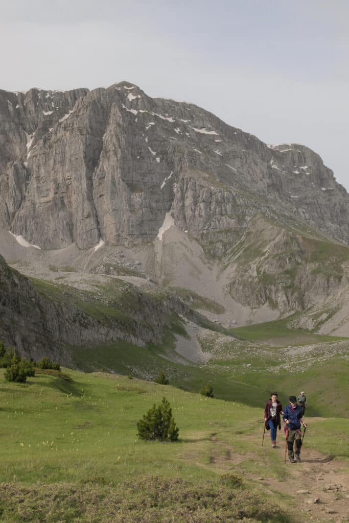 Μία ώρα βόλτας, κυριολεκτικά, σε ένα τοπίο αλπικό, με ελάχιστα κοντά δέντρα, γεμάτη λουλούδια της άνοιξης, τη σκιά της κορυφής Αστράκα και κάποια σημάδια άγριων αιγών κάπου στο βάθος. Νωρίς το πρωί έχουμε ξεκινήσει την ανάβαση, κόσμος δεν υπάρχει ακόμη στο ορειβατικό μονοπάτι. Οι περισσότεροι επισκέπτες έρχονται εδώ για μονοήμερη πεζοπορία, ξεκινώντας το πρωί από το Μικρό Πάπιγκο, κάνοντας μια μικρή στάση στο καταφύγιο, συνεχίζοντας προς τη λίμνη και κατεβαίνοντας πια πάλι προς το χωριό και τις φιλόξενες και πεντανόστιμες ταβέρνες του. Αυτό το γεγονός μας δίνει ένα δίωρο προβάδισμα αλλά και τη μοναδική αίσθηση της «ανακάλυψης» ενός μοναδικού φυσικού τοπίου χωρίς κόσμο.